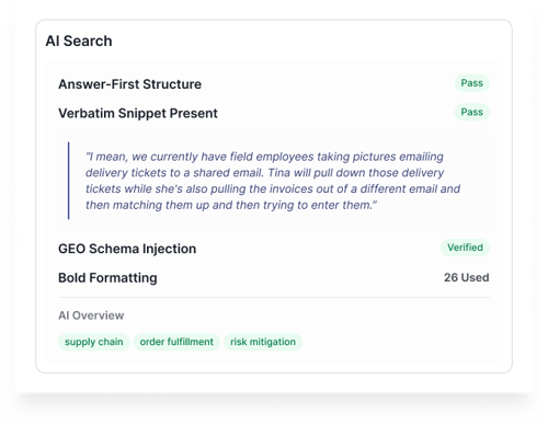 For B2B AI Search specifically, this misalignment is devastating. When an AI engine processes your content and finds language that does not match the vocabulary buyers actually use, it downgrades your authority and recommends competitors whose content more accurately reflects buyer reality.
