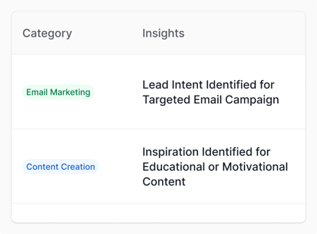 AI aggregates signals from web, search, CRM, calls, and external sources, then looks for consistent patterns and shifts. For example, a spike in search demand around a new integration keyword plus an uptick in sales conversations mentioning the same topic signals a real emerging use case.